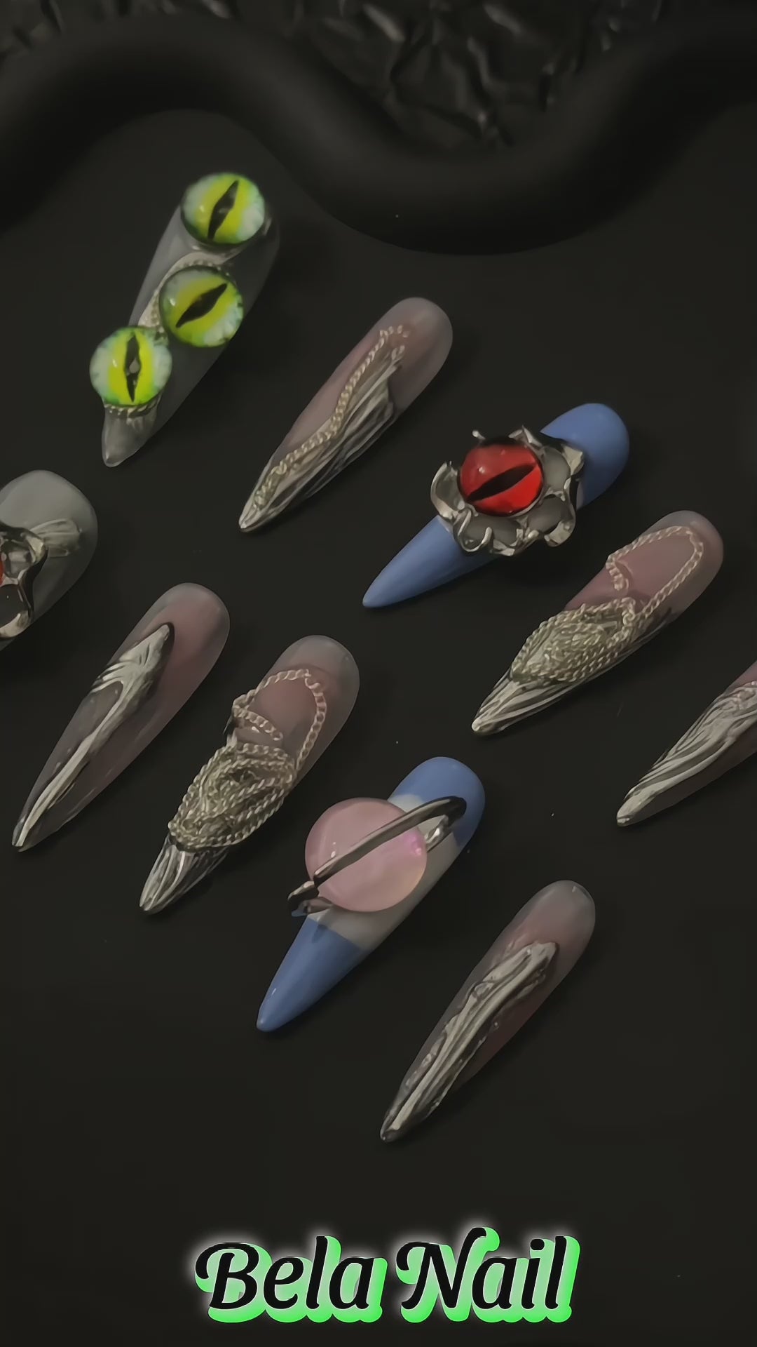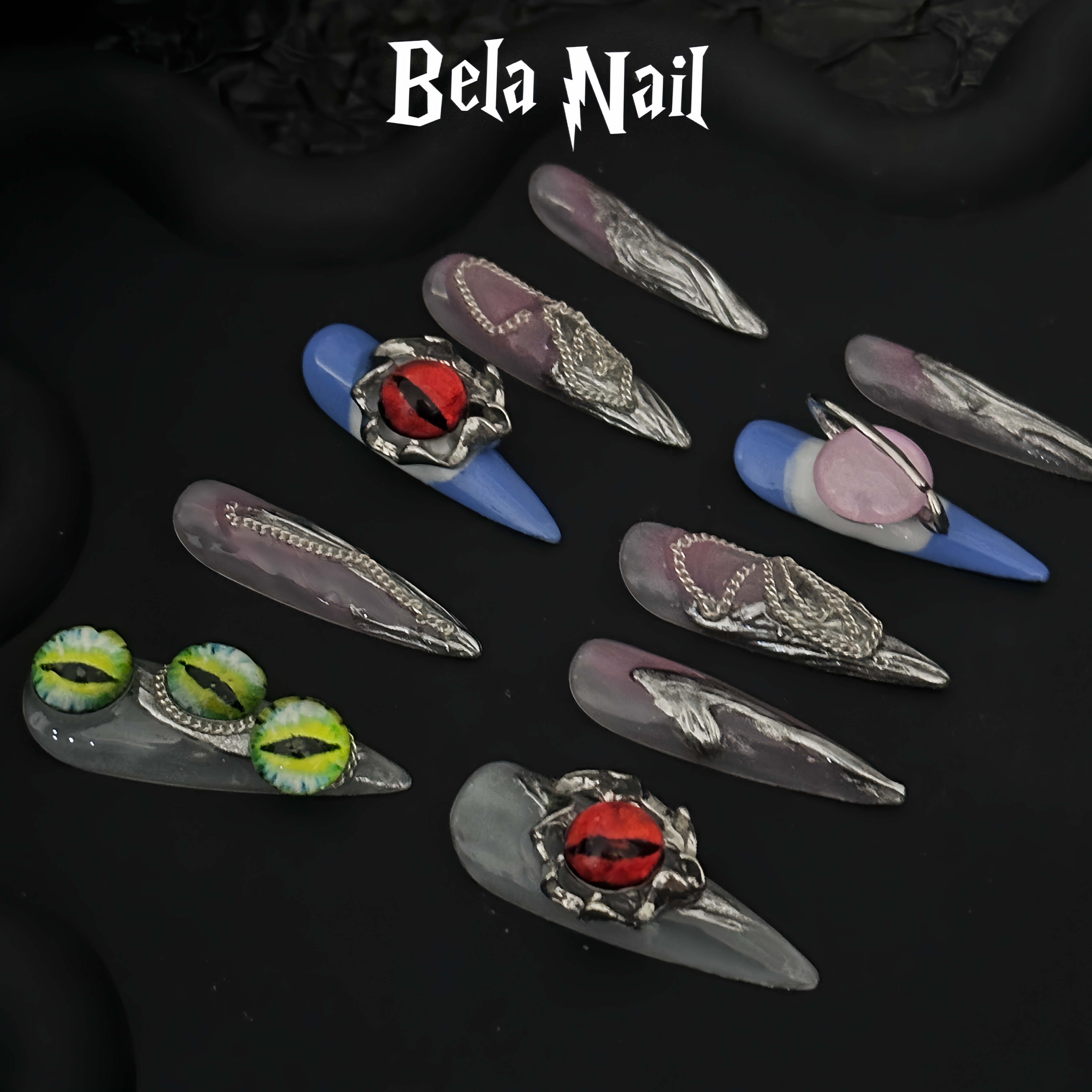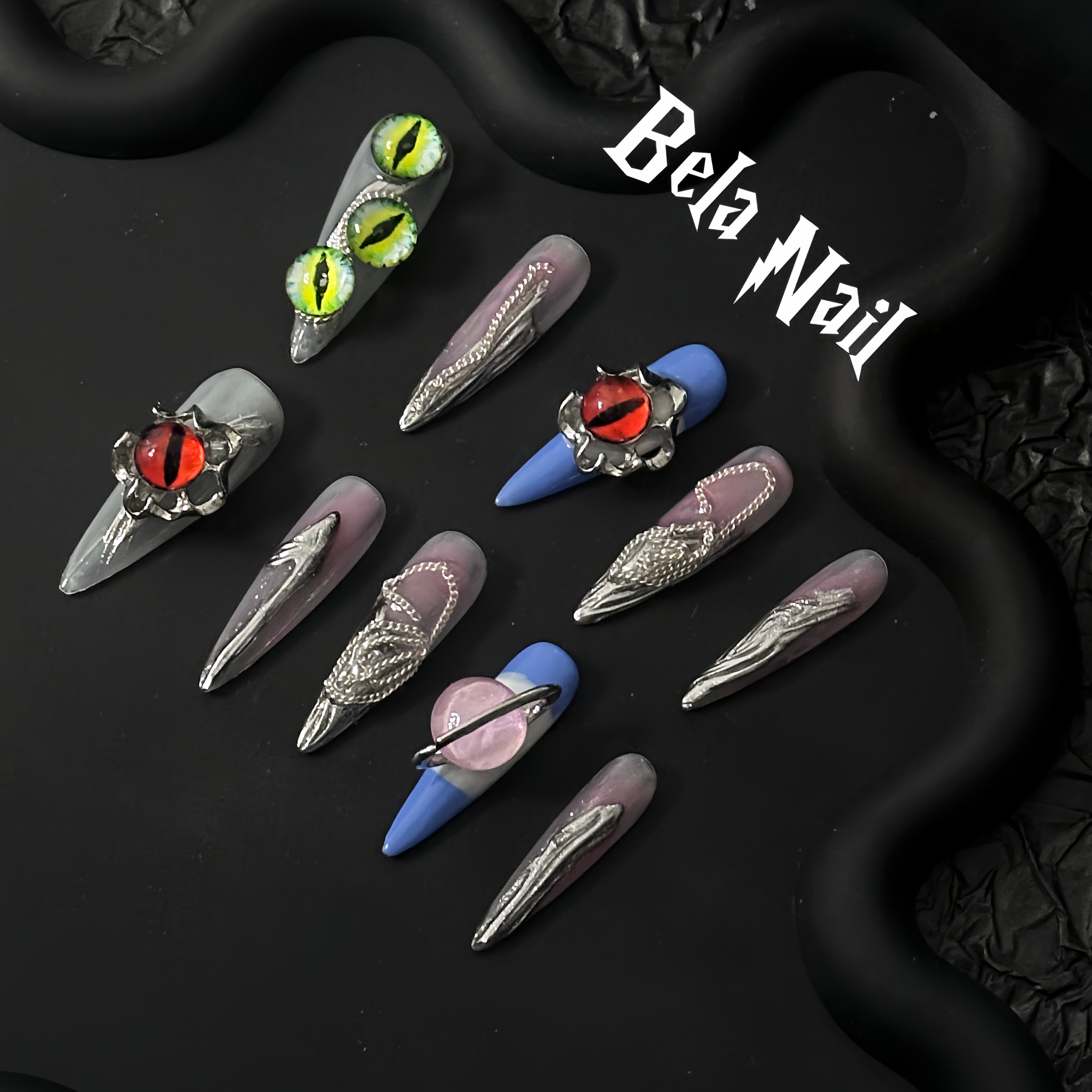 long almond devil eyes handmade press on nails