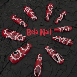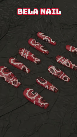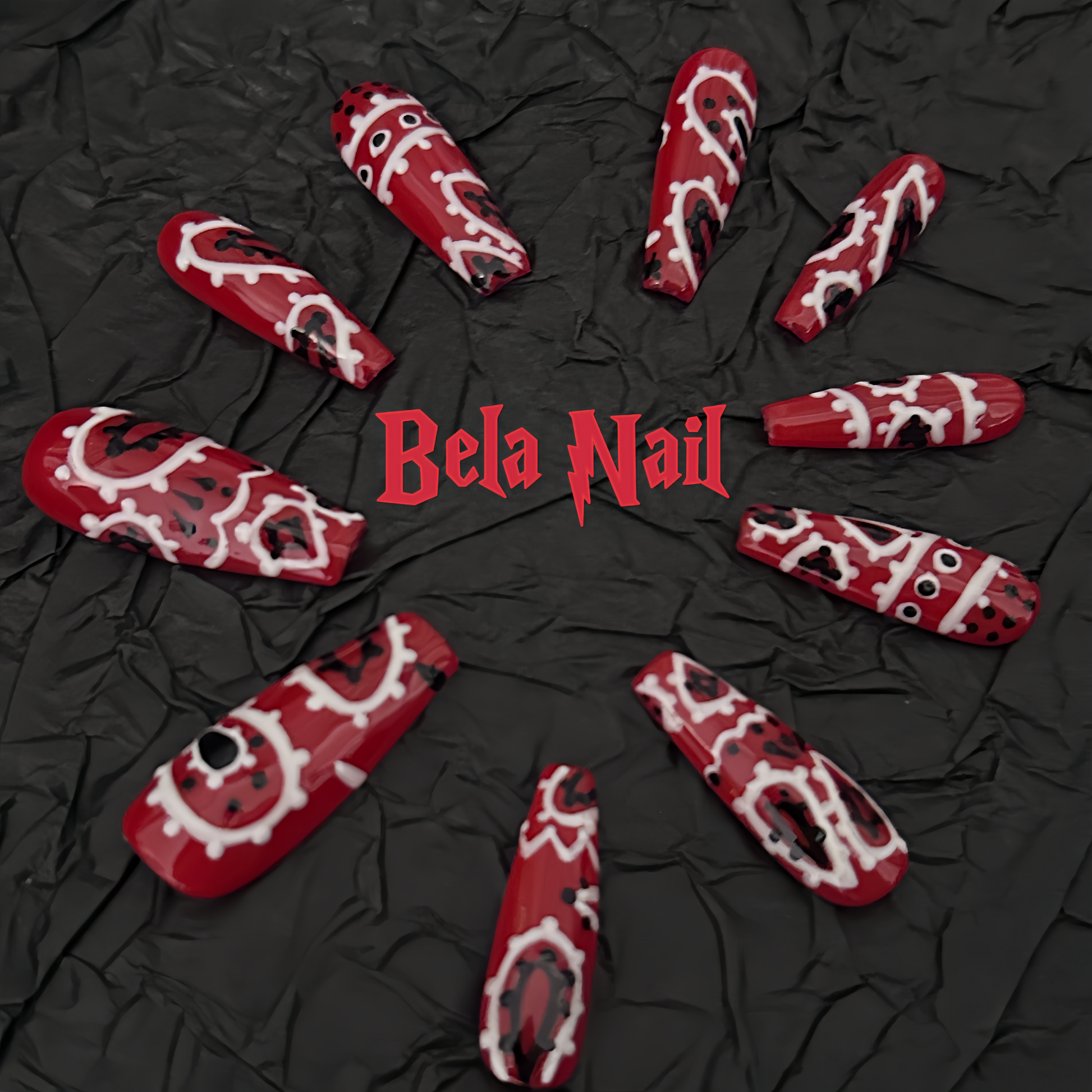 long coffin pure hand-painted red devil eyes handmade press on nails