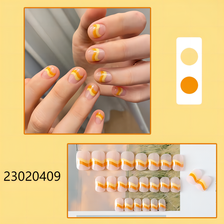yellow wave short round machine press on nails